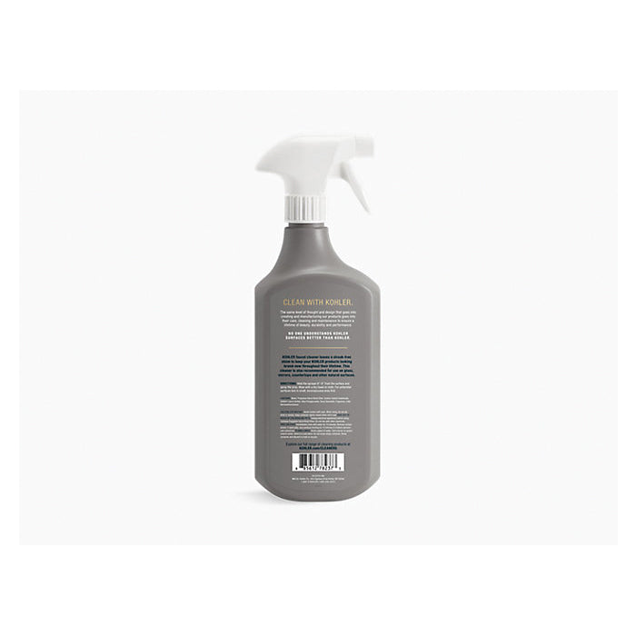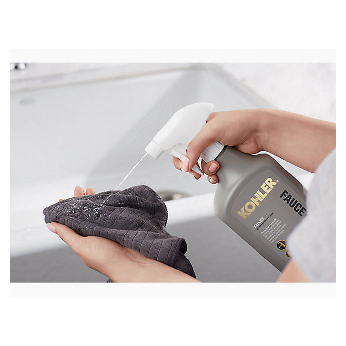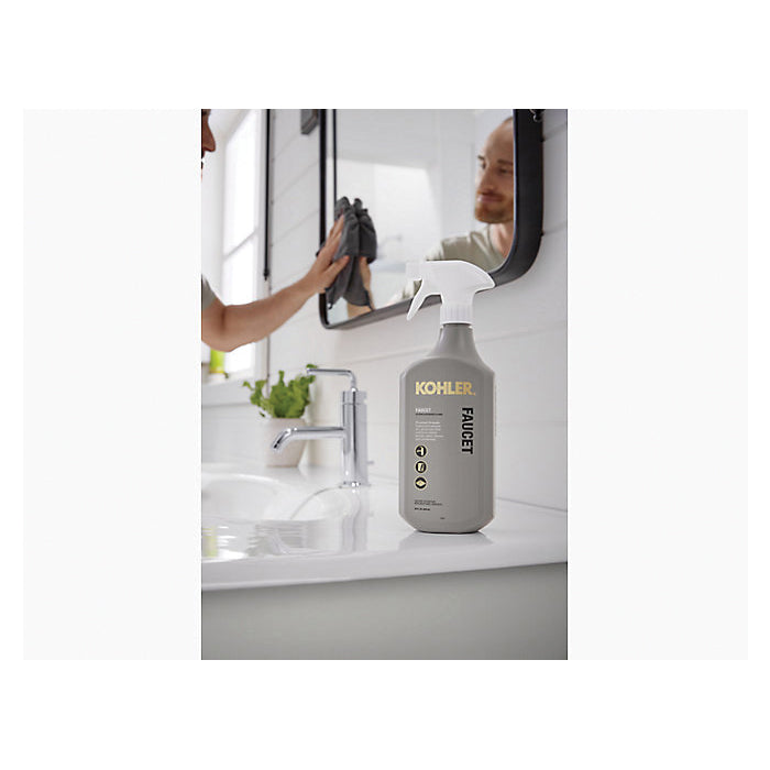 KOHLER premium faucet cleaner cleans and removes dirt, grime and other residue to restore faucets, glass, mirrors and countertops. Leaving a streak-free shine, this cleaner keeps your KOHLER products looking brand-new throughout their lifetime. Features KOHLER | minus Kitchen and bathroom cleaner. Cleans and removes dirt, grime, and other residue on faucets, glass, mirrors, countertops and other natural surfaces. Premium formula leaves a streak-free shine. Ammonia and alcohol-free. 28 fl oz spray bottle. May be used on other branded faucets, glass, mirrors and other natural surfaces, however testing in an inconspicuous area first is recommended.